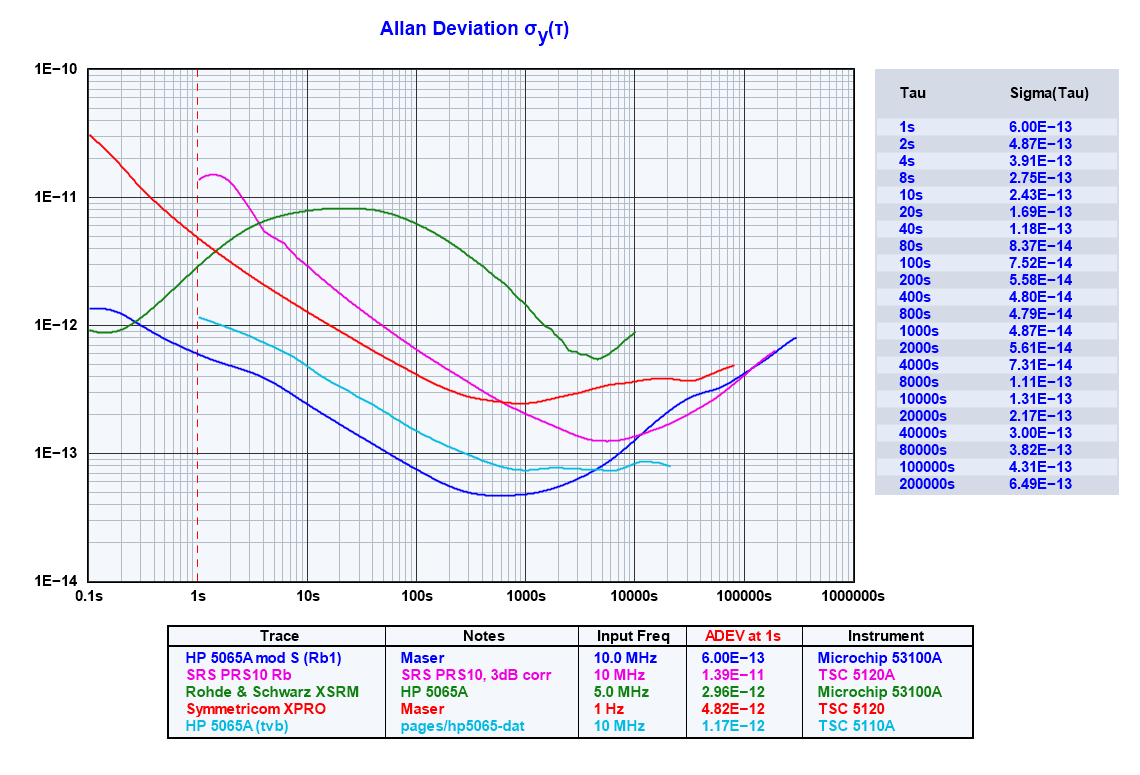 while an HP 5065A can reach this level of stability in under 500 seconds. To assess the performance of an HP 5065A fairly, you need an H-maser.